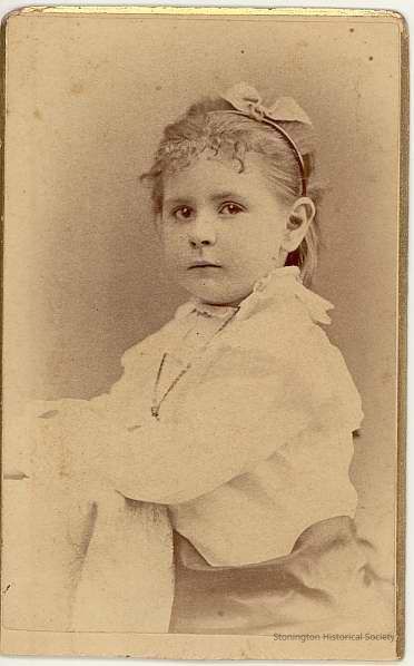 1/2 seated photo of little girl, approximately 5. "Addie Woodbury Palmer" Photo by D B Vickery, 37 Merrimack St, Haverhill Mass.