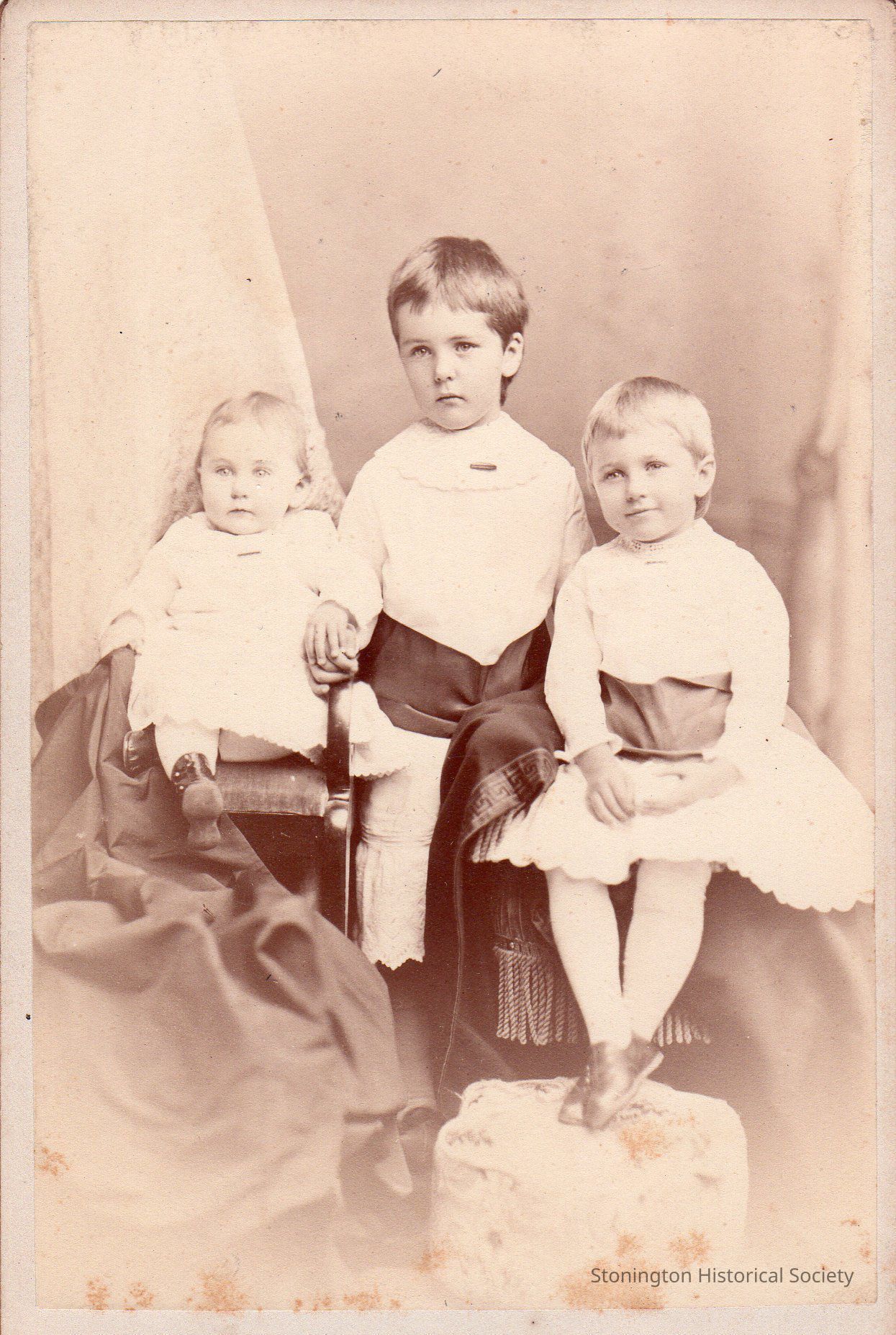 photograph portrait, mounted on board, the children of James and Emma Adams - left to right: Helen, Eliza and Parmelia Adams