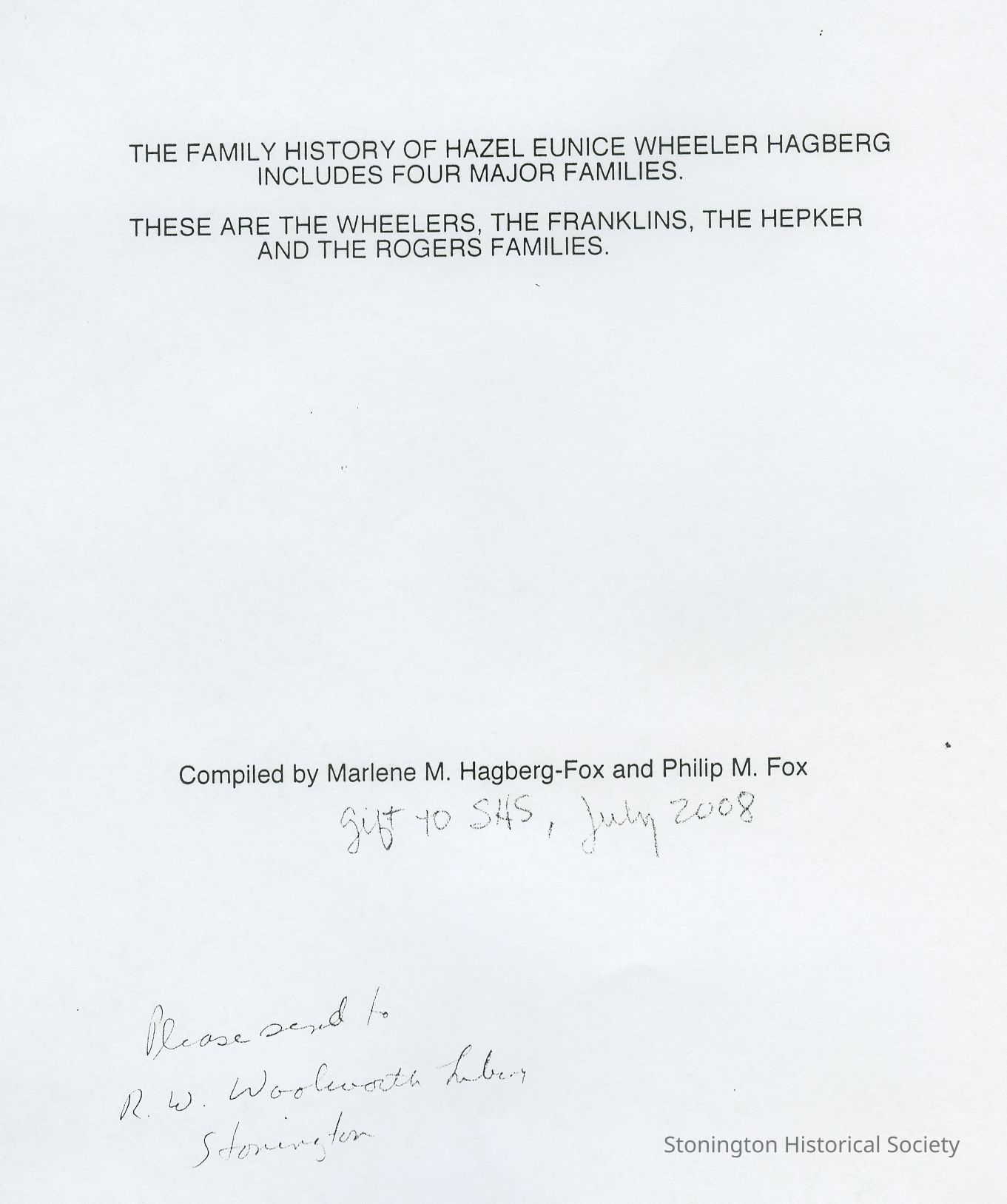 The Family History of Hazel Enuice Wheeler Hagberg includes Four Major Families: These are the Wheelers, the Franklins, the Hepker and the Rogers FamiliesEntry/Object ID