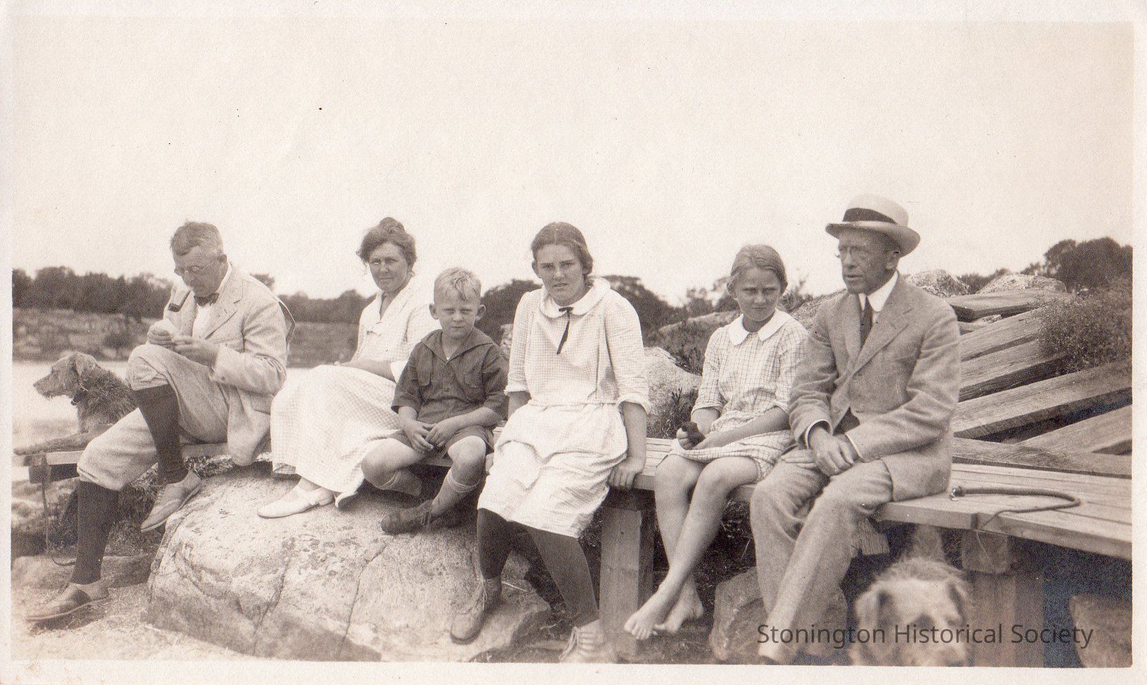 black and white photograph of Elizabeth, Jane, Fred Jr., Helen and Frederic C. Paffard with Eugene Phelps Edwards, c. 1923