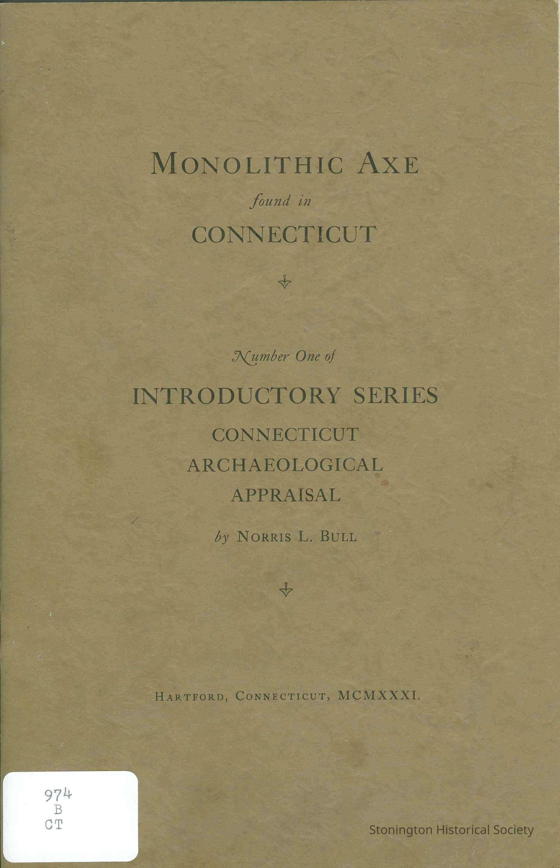 Monograph on monolithic axe found in Branford CT in 1850s. Further evidence that early Connecticut people had dealings with people from far and wide