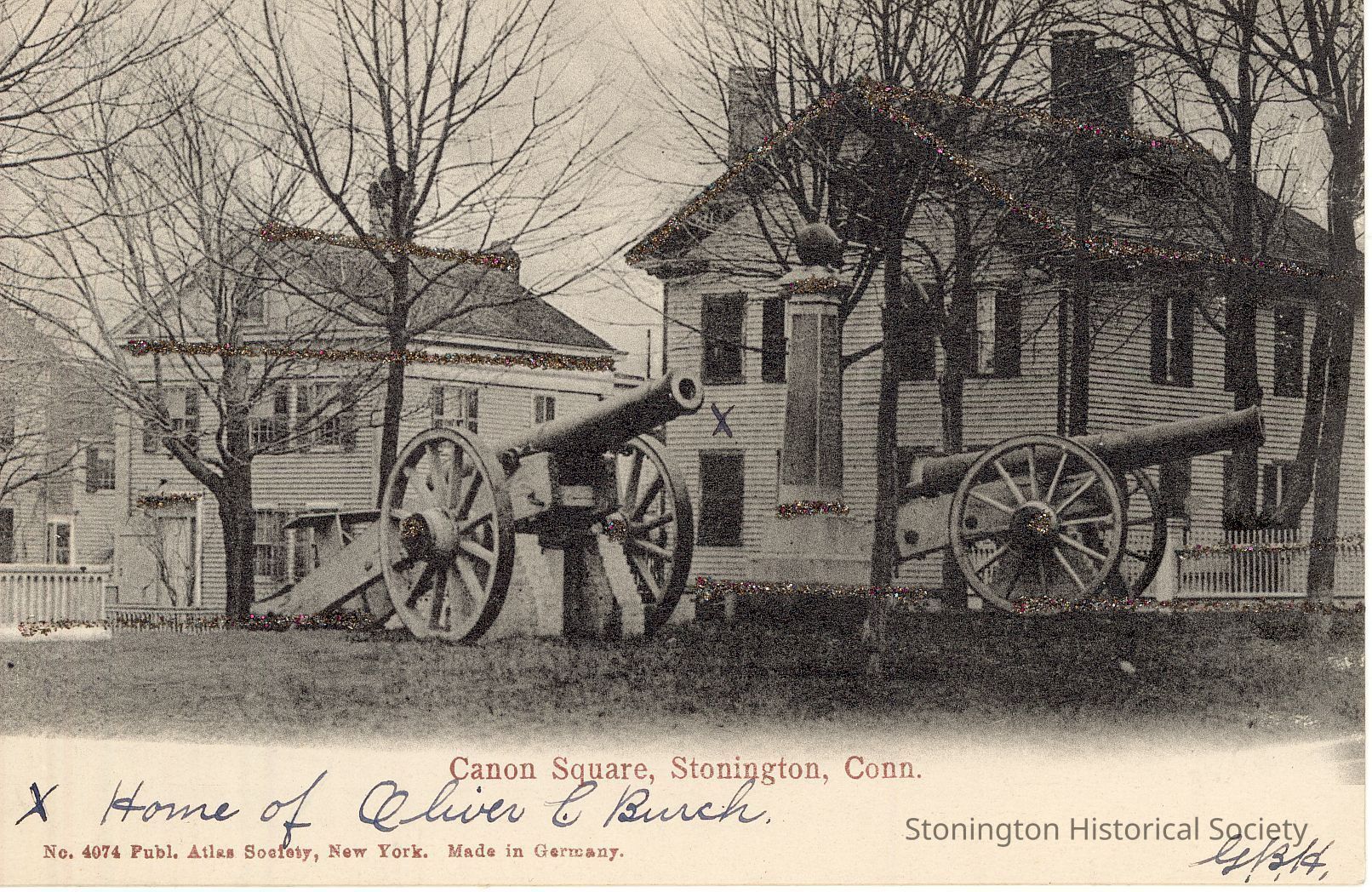 Cannon Square, Stonington Conn. x marks home of Oliver Burch