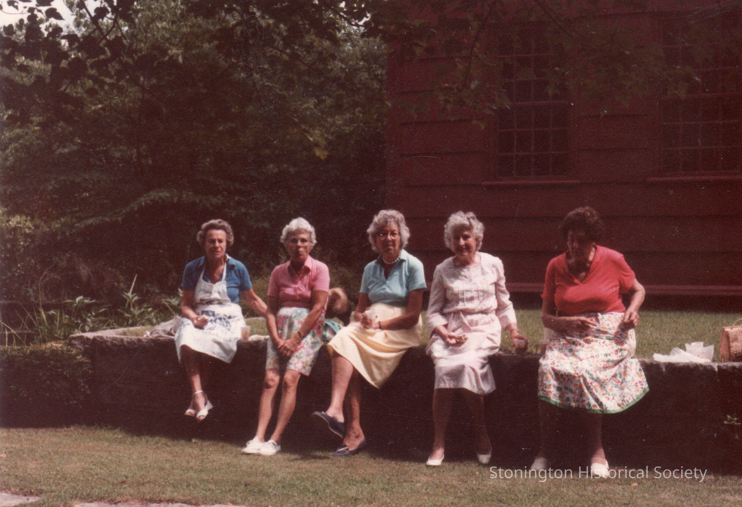 Color snapshot, "group of volunteers at Whitehall - Katherine Mason, chairman, October 1984." Whitehall, Stonington, CT.