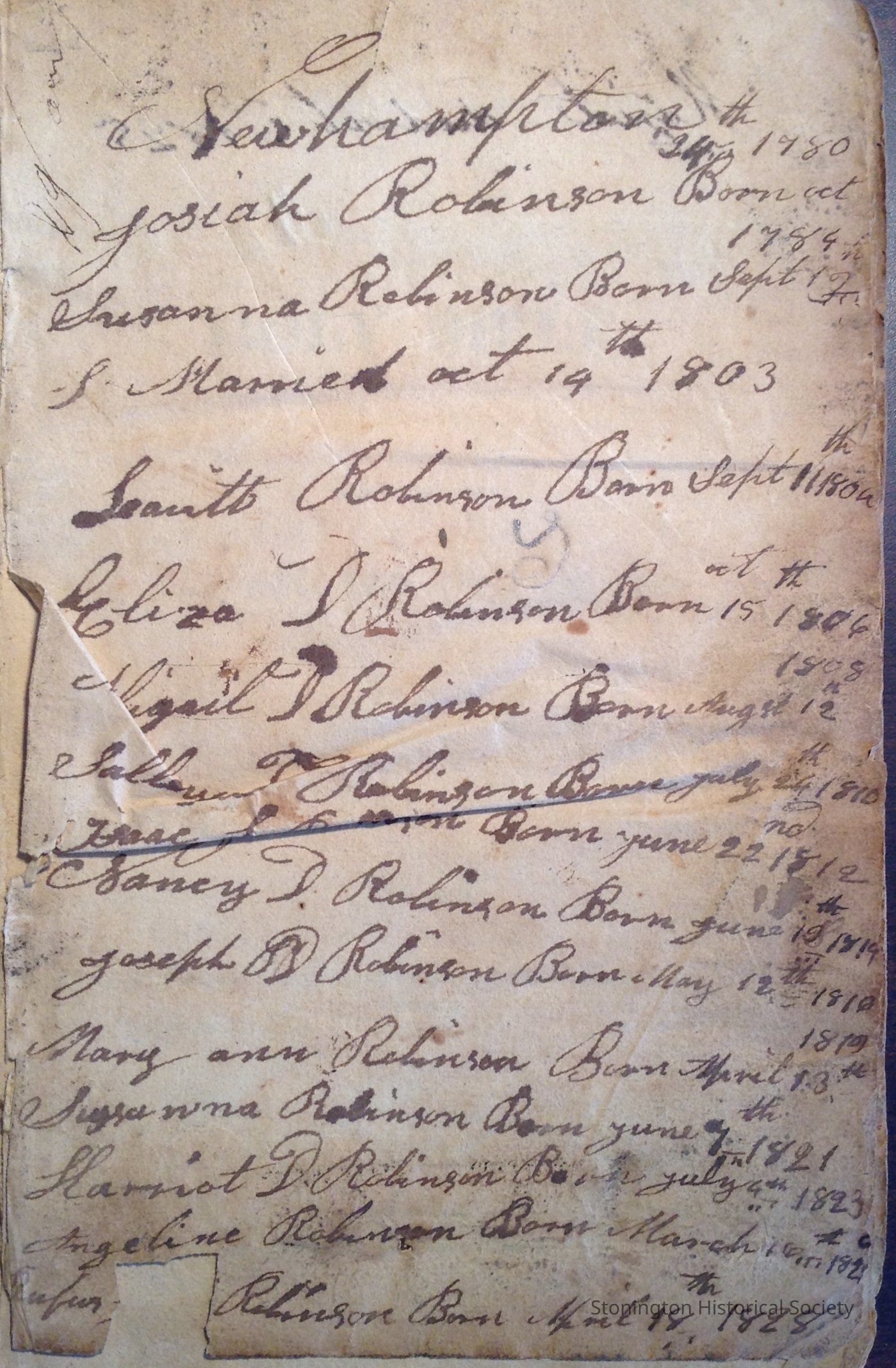 Robinson Family Bible, "The Holy Bible, containing the Old and New Testaments," published 1827, with handwriten family namesCollection