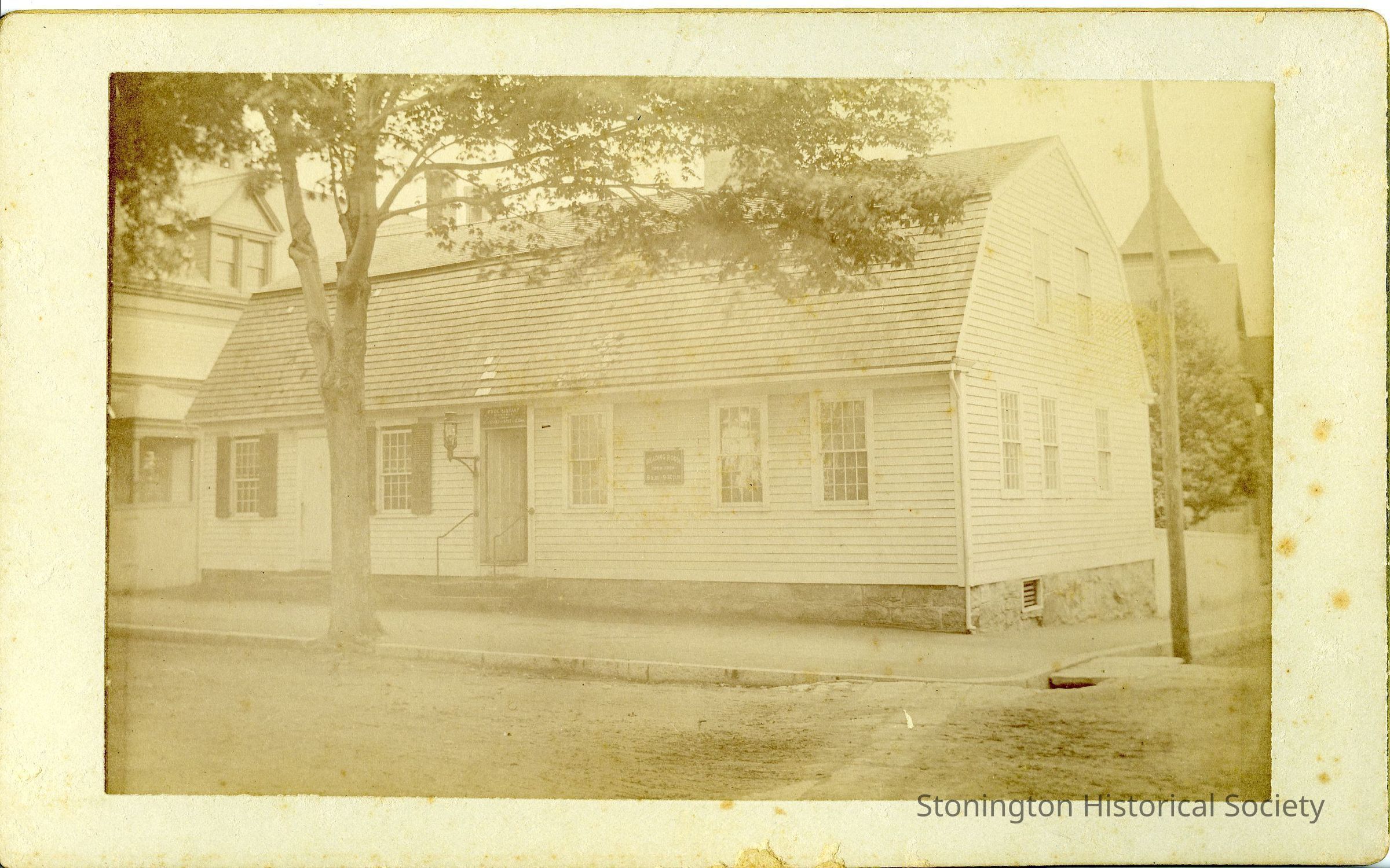 photograph, view of the Mary Howe house, 53 Main Street. Sign reads "Reading Room Open from 8am to 9:30 pm"