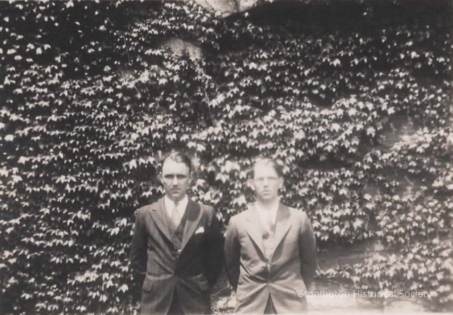 black and white snapshot, Allen and Howard Crouch at Brown University for Allen's graduation, 1932.