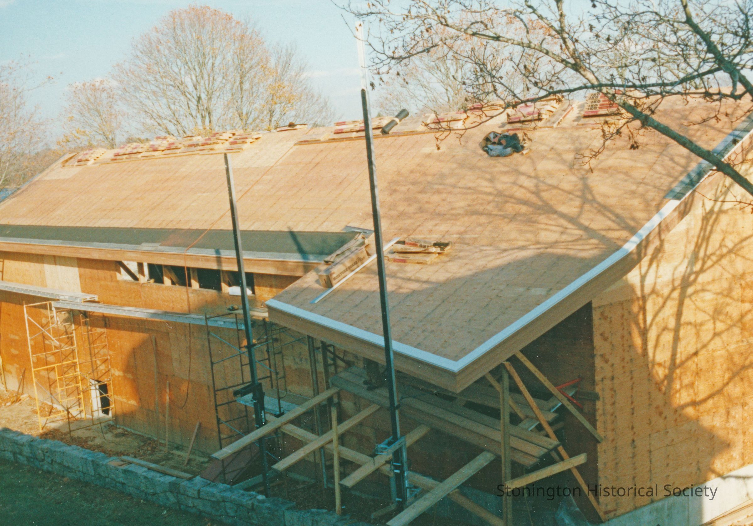 Construction of the Woolworth Library of the Stonington Historical Society next to the Palmer House.