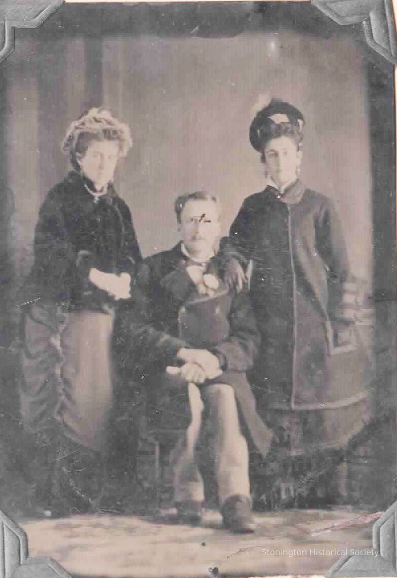 Tintype, "Emily (Wheeler) Williams, Grover Cleveland, later President of the United States; Molly Burlington, Little Falls." Taken before 1885.