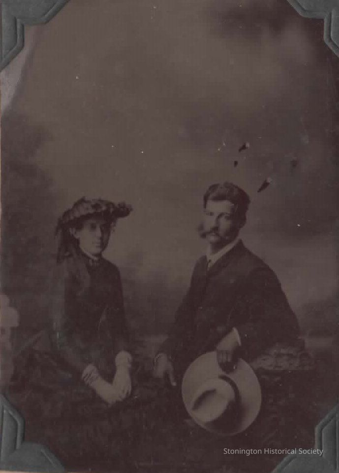 Tintype, "Grace D. Wheeler and John Churchill of Baston; Great Bend, Kansas. Taken in Kansas 1883." Late 1800s.