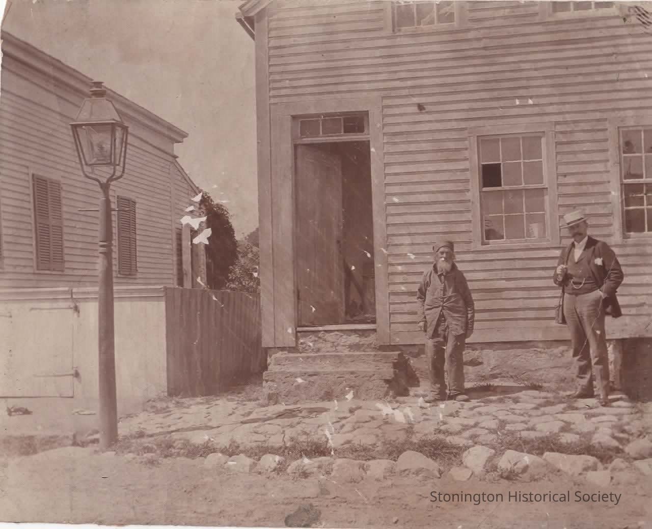 Photograph of "Zebulon Hancox and his home. His friend (and everybody's friend), Judge Wurtem A. Breed."