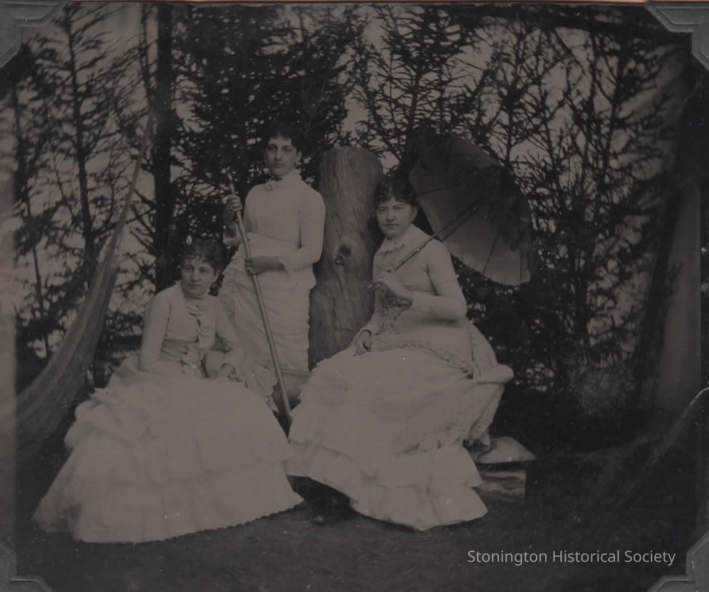 Tintype, "Fanny (Pollard) Griffin, Annie (Cutler) Atwood, Jennie Merritt." Late 1800s.