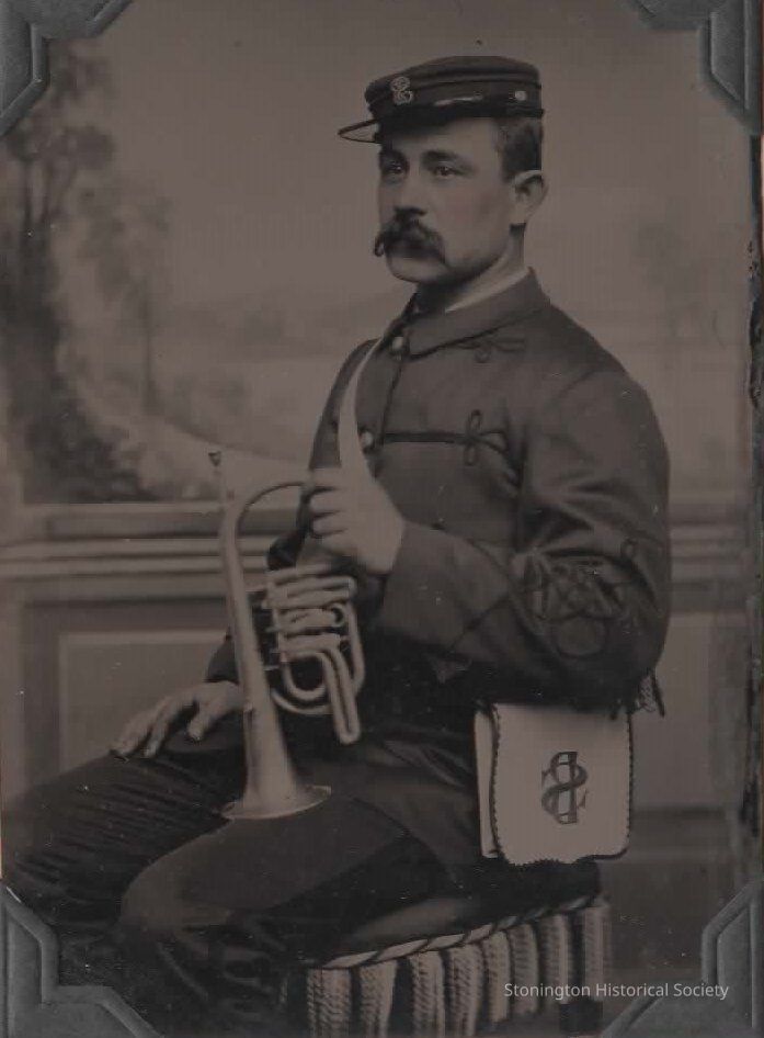Tintype, "George Ollweiler, Leader Stonington Band, in the late 1880's."