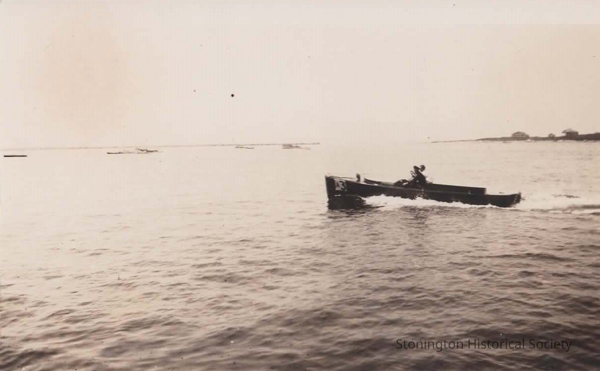 Photograph, motorboat in Stonington Harbor, photographed August 1914 for the Battle of Stonington Centennial.