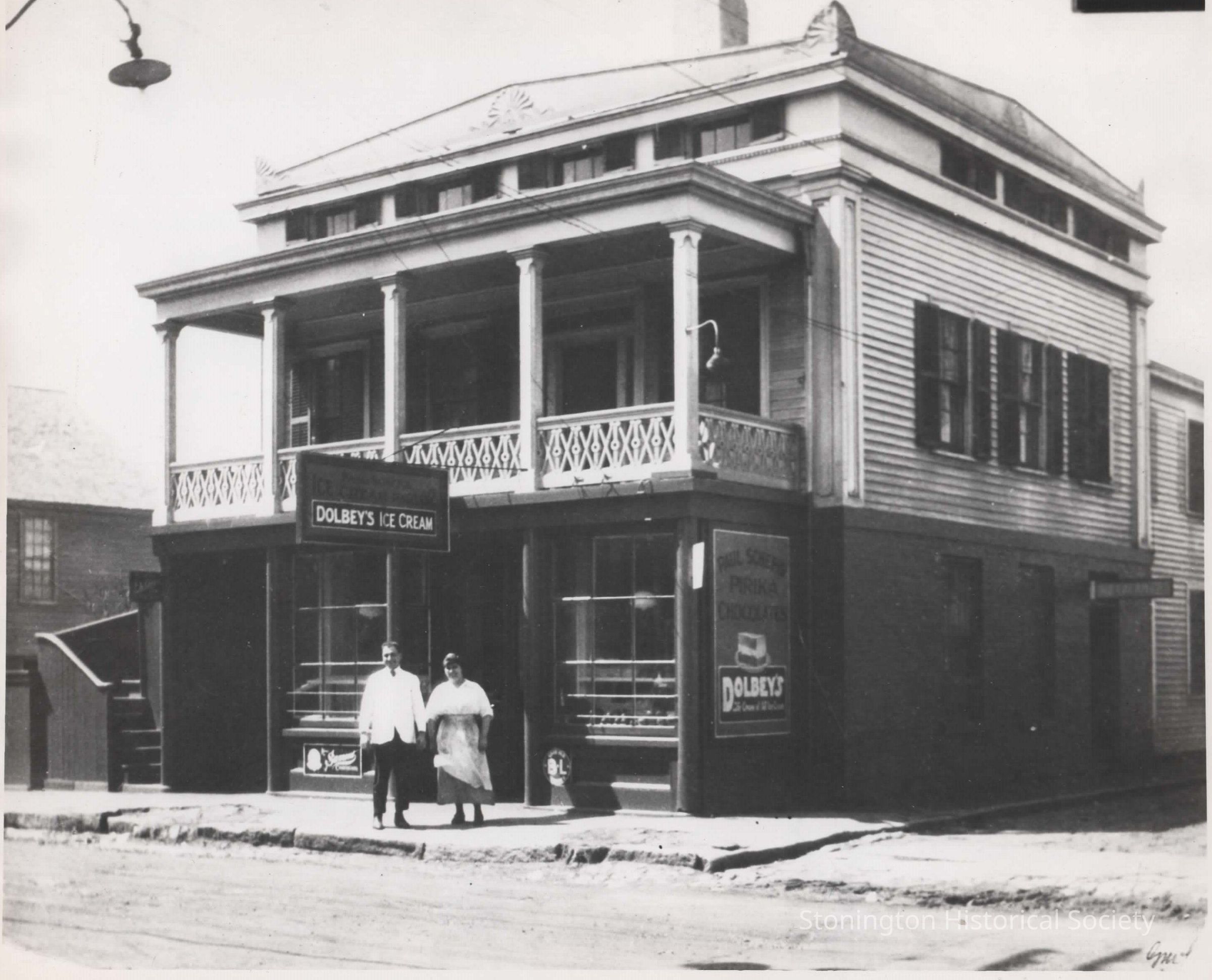 black and white photograph, Paul Schepis and his wife, Katherine Squadrito, outside their store at 134 Water Street, 1918.
