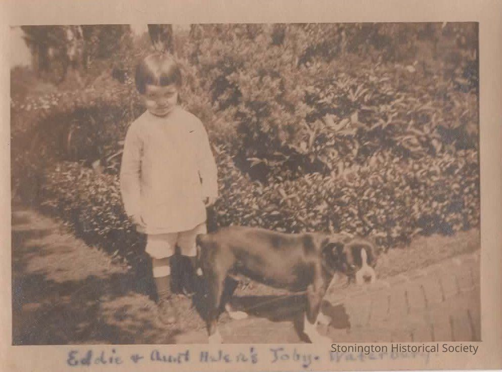 black and white snapshot "Eddy and Aunt Helen's Toby - Waterbury", taken from the Helen Streeter Photograph Album, 1916Collection