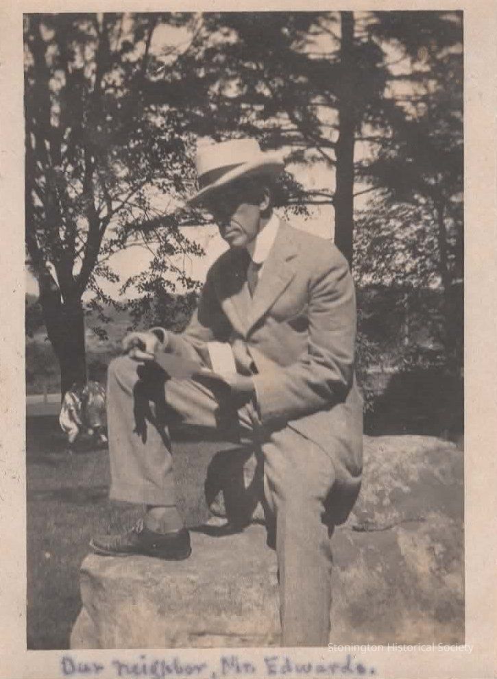 black and white snapshot "Our neighbor, Mr. Edwards," [Eugene Edwards of Stone Acres] taken from the Helen Streeter Photograph Album, 1916Collection