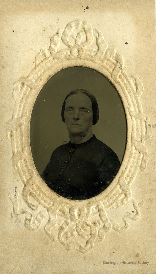 Head and shoulder photo of unidentified woman inside embossed matCollection