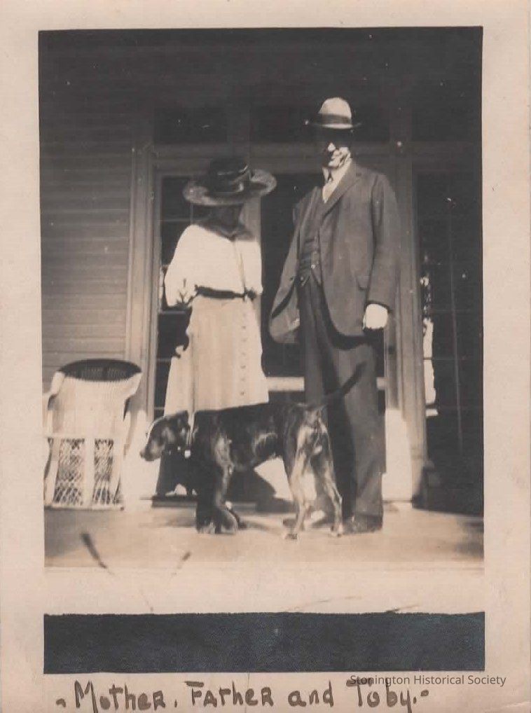 black and white snapshot "Mother [Alice Streeter], Father [Edward Streeter] and Toby," taken from the Helen Streeter Photograph Album, 1916Collection