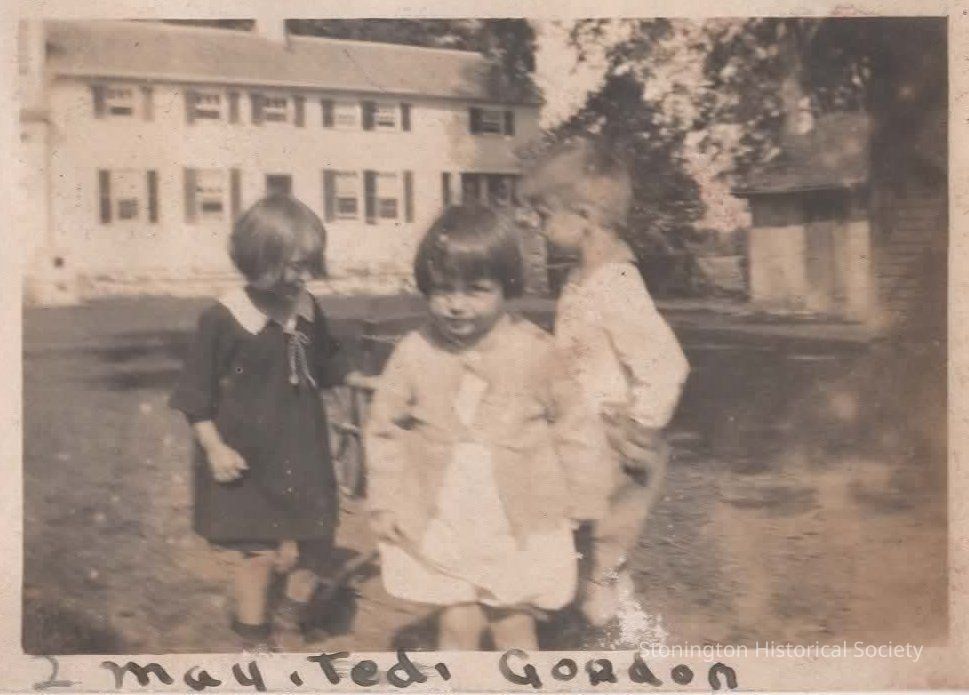 black and white snapshot "May, Ted, Gordon," taken from the Helen Streeter Photograph Album, 1916Collection