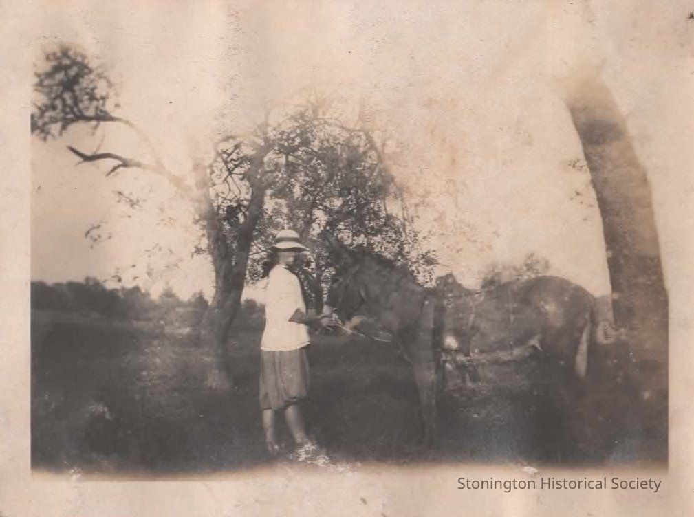 black and white snapshot, mule at Red Brook (Streeter residence), taken from the Helen Streeter Photograph Album, 1916-1917.Collection