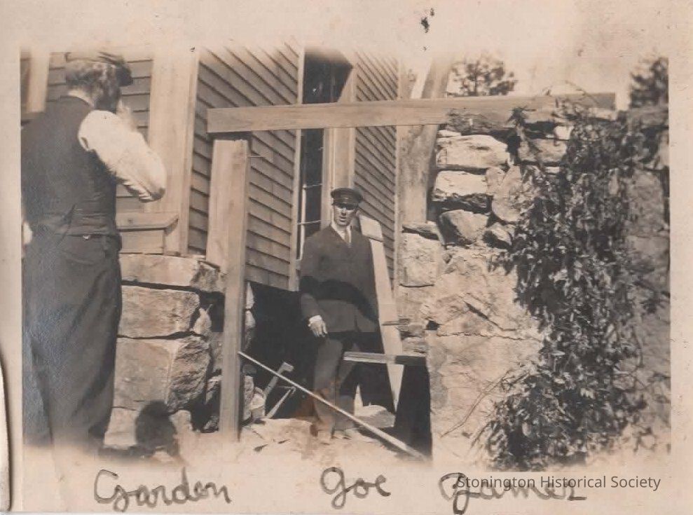 black and white snapshot, James and Joe in the garden at Red Brook, taken from the Helen Streeter Photograph Album, 1916-1917.Collection