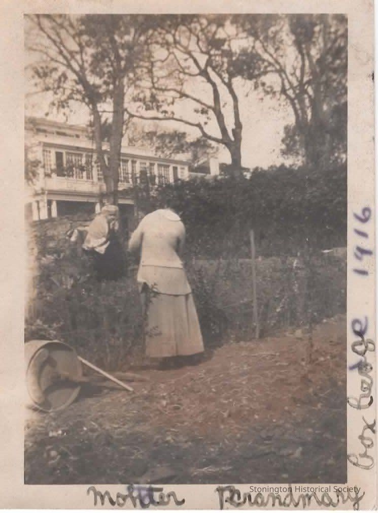 black and white snapshot, Alice Streeter in the garden at Red Brook, taken from the Helen Streeter Photograph Album, 1916-1917.Collection