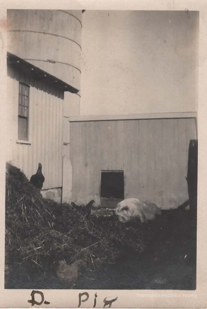black and white snapshot, pig at Cove Lawn, taken from the Helen Streeter Photograph Album, 1916-1917.Collection