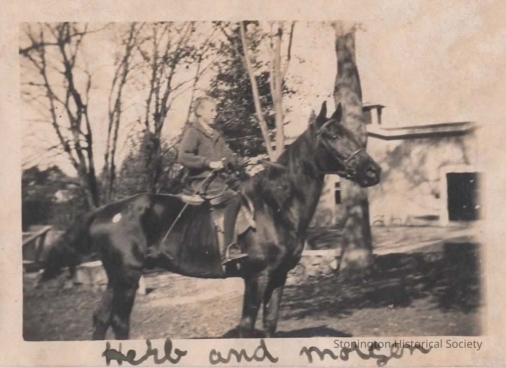 black and white snapshot, Herb and horse Morgen, taken from the Helen Streeter Photograph Album, 1916-1917.Collection