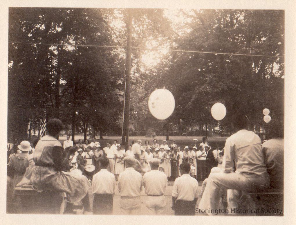 2 black and what photographs of a parade marching through Stonington Borough, probably August 1924. Note that cat balloons.
