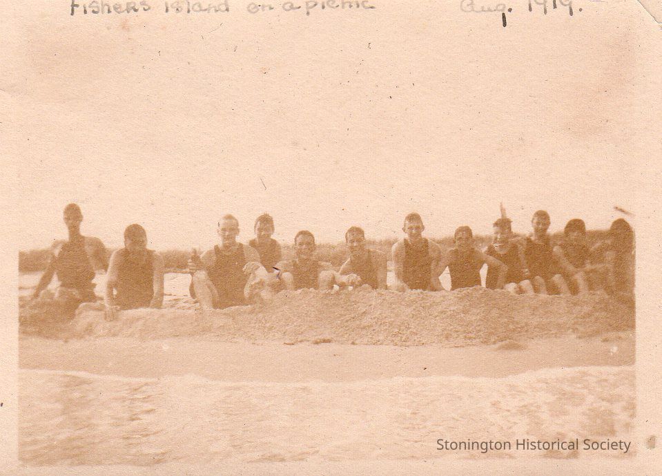 black and white snapshot, "Fisher's Island on a Picnic," taken from the Helen Streeter Photograph Album, 1919.Collection