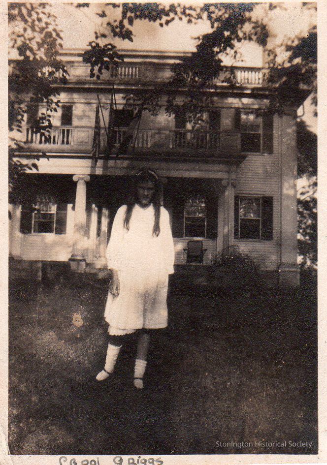 black and white snapshot, Carol Griggs pictured at Red Brook before leaving for Camp Mystic, taken from the Helen Streeter Photograph Album, c. 1919.Collection