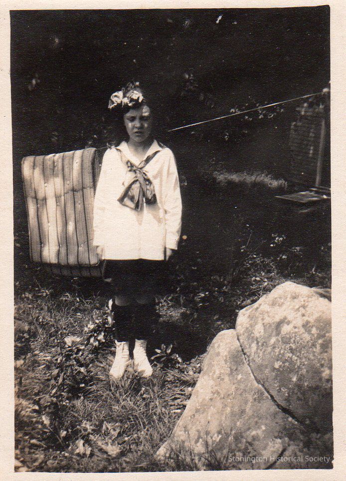 black and white snapshot, unidentified camper at Camp Mystic, August 1918, taken from the Helen Streeter Photograph Album, 1918.Collection