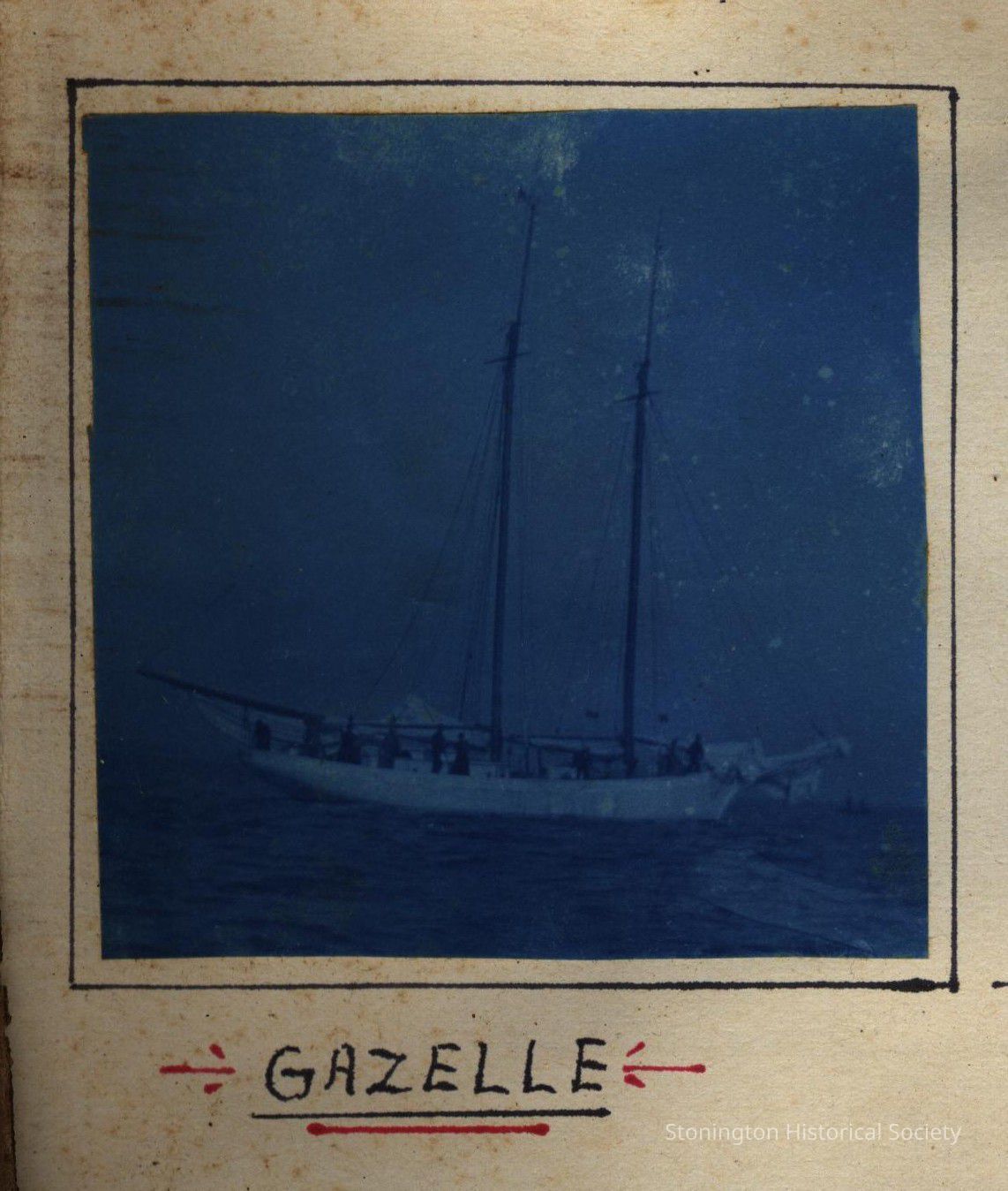 Cyanotype print of "Gazelle", a sailing yacht
