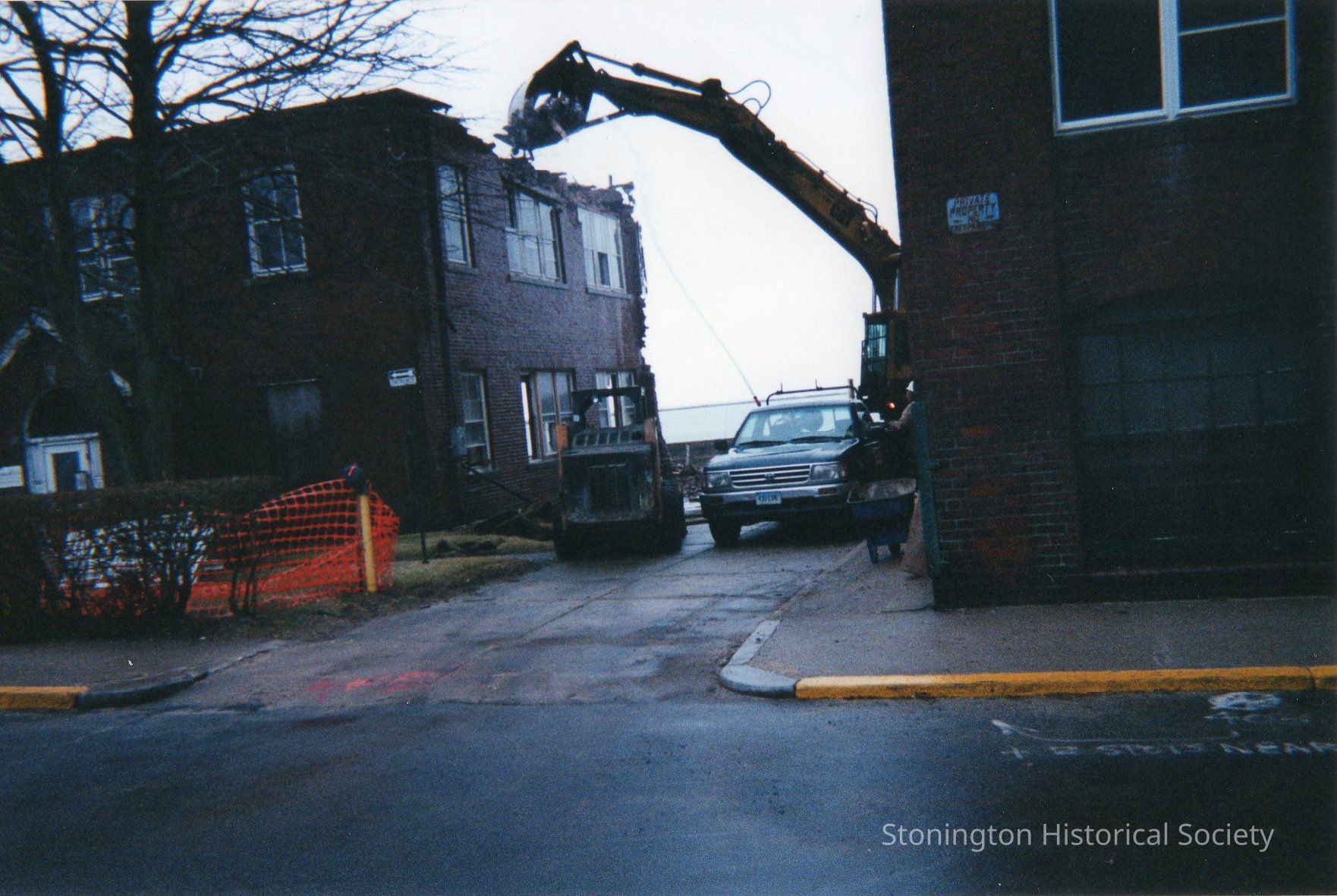 Collection of 21 color photographs of the demolition of the Monsanto/Atwood building on Water Street in Stonington Borough, taken by Beth Walker, February 18, 2003Collection