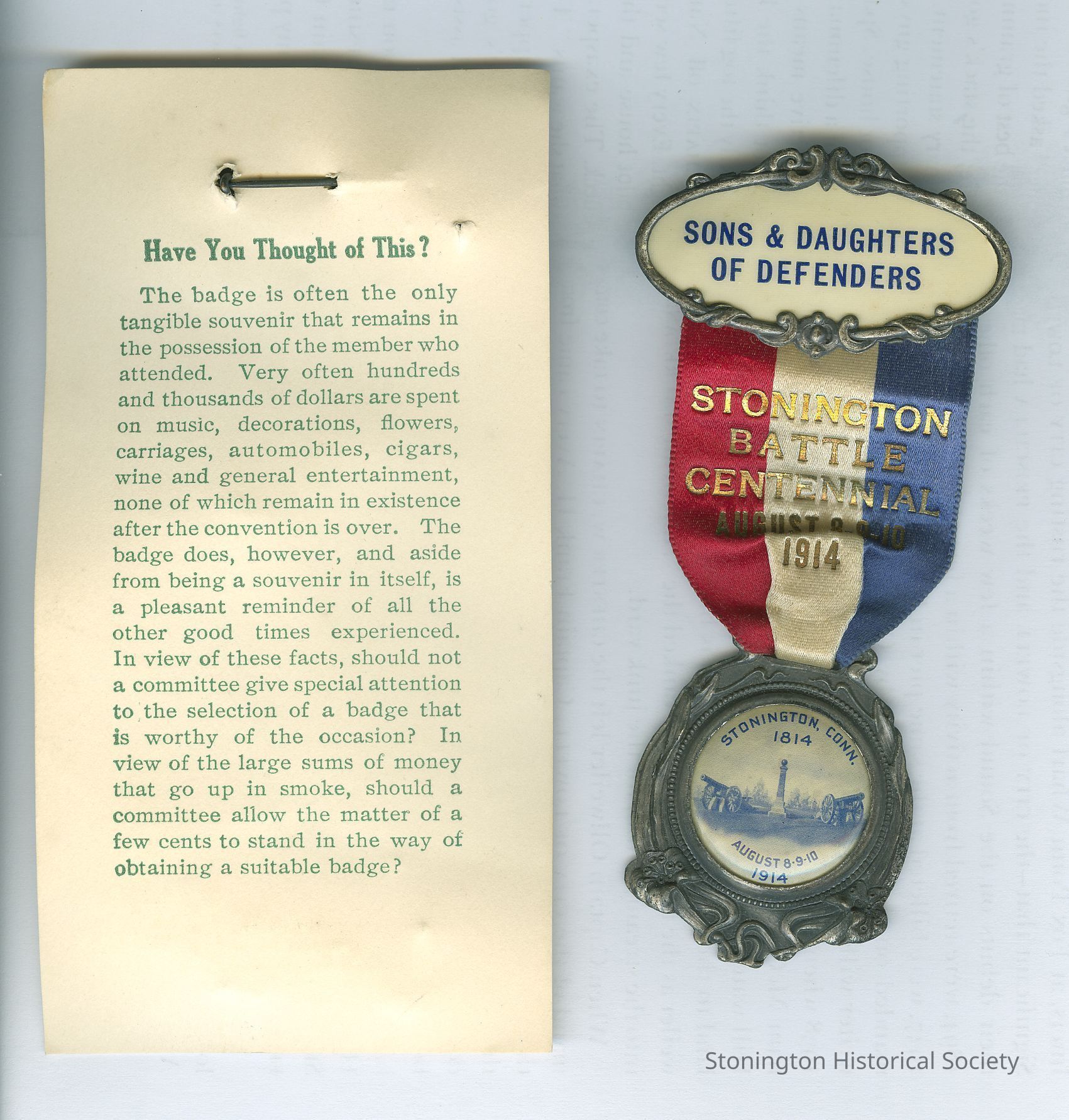 One medal from Packet (2) of 9 medals "Sons and Daughters of Defenders", Stonington Battle Centennial, 1914
