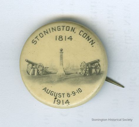 Packet containing pins commenorationg 1814 Battle of Stonington, War of 1812, dated August 8, 9, 10, 1914 (5 pins)