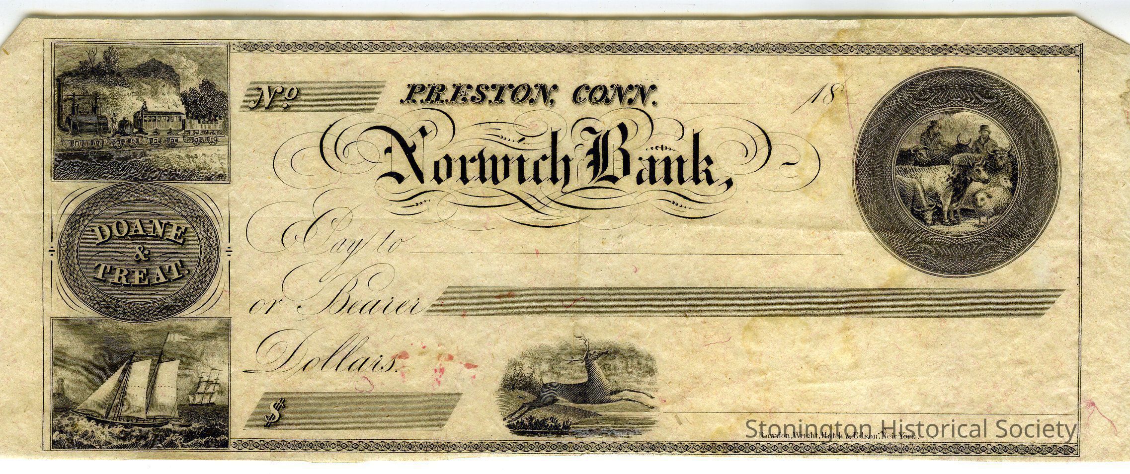 Three blank checks Norwich Bank, Preston Conn. Doane & TreatEntry/Object ID