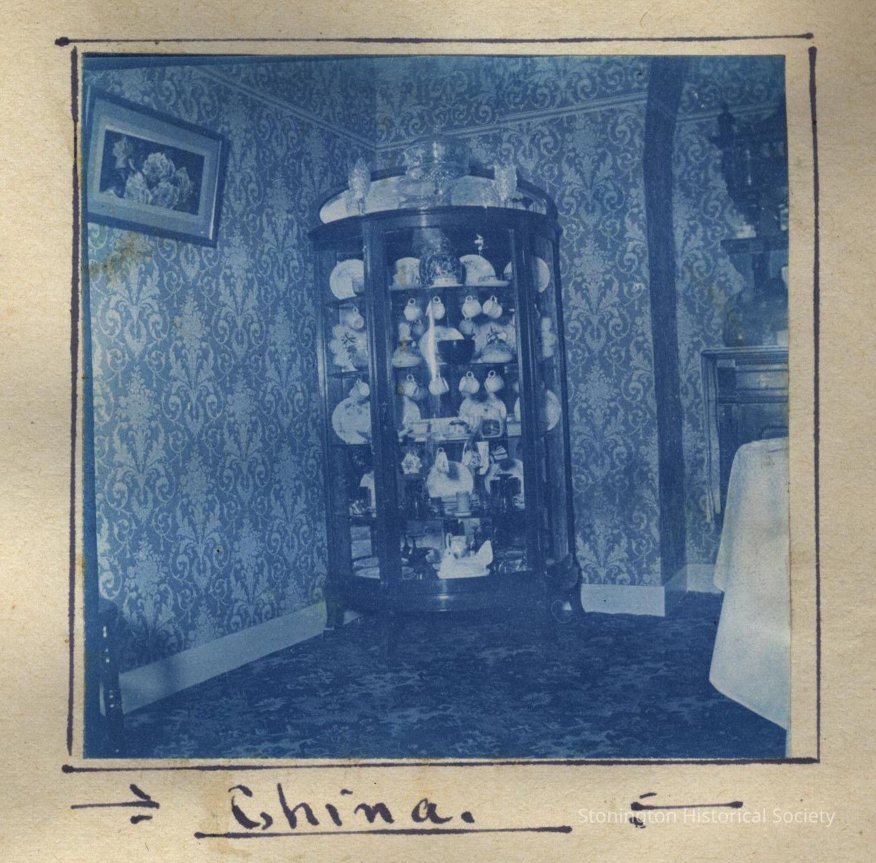 Cyanotype print of corner china cupboard