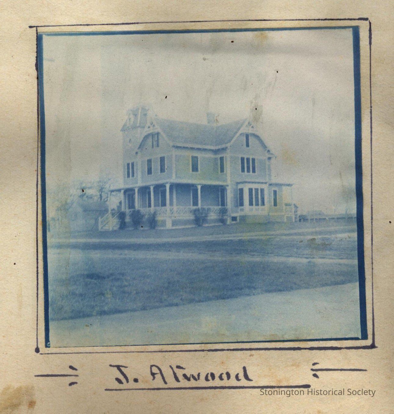Cyanotype print of J. Atwood's home (11 Cutler Street, Stonington)