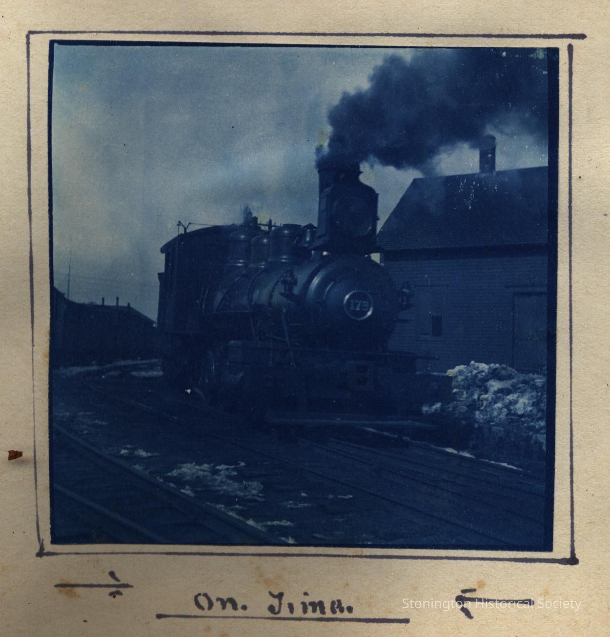 Cyanotype print of train engine #179, On Time
