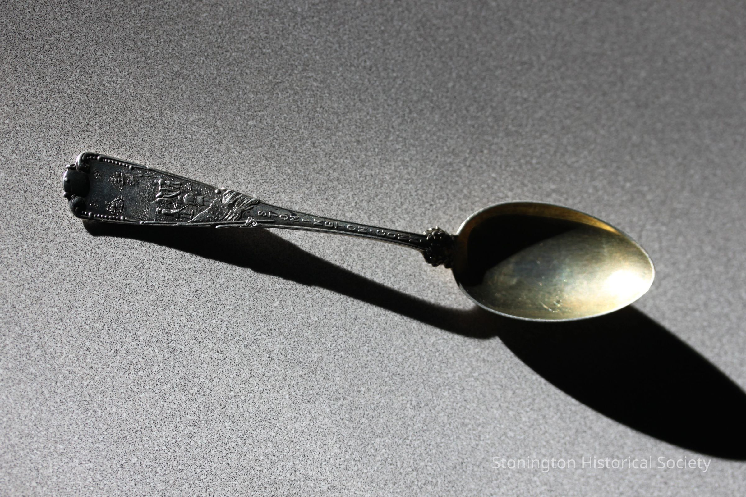 Box of silver containing: 1 spoon commerating the Battle of Stonington, 1814