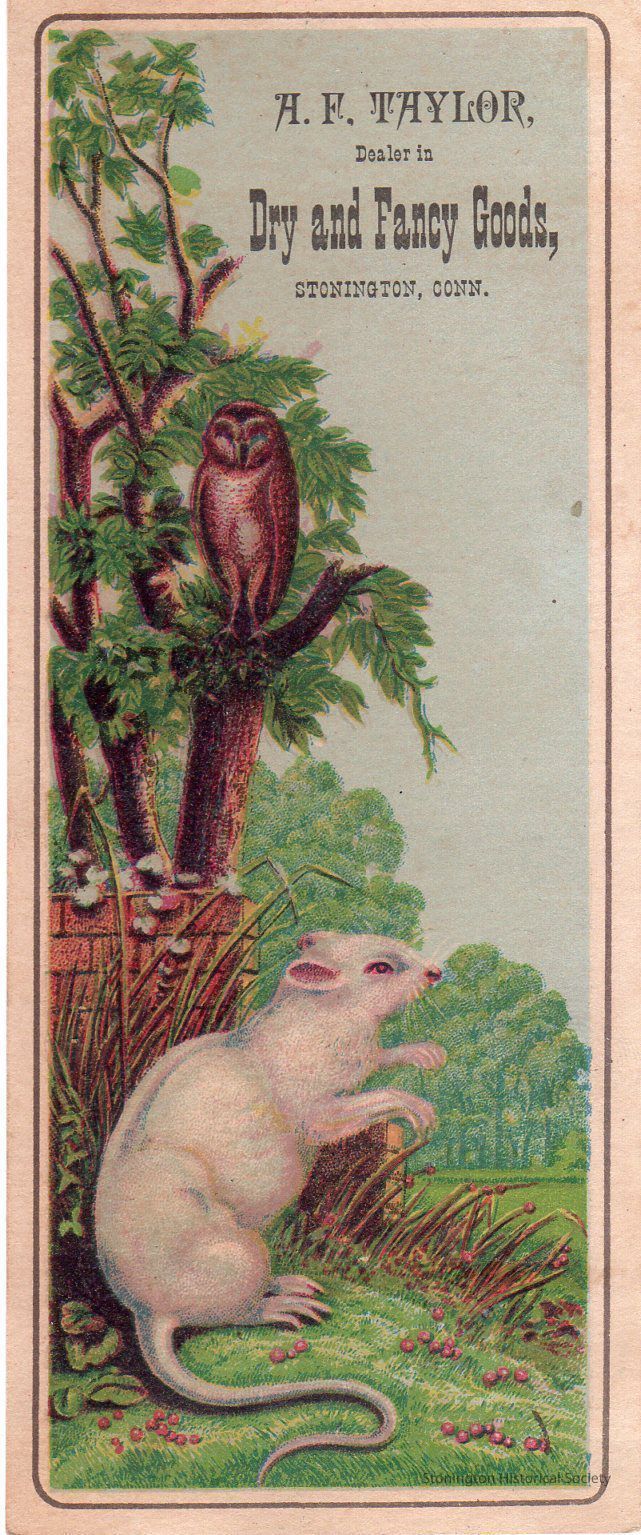 Trade Card, "A.F. Taylor, Dealer in Dry and Fancy Goods, Stonington, Conn." Albert F. Taylor had a dry goods store at 140 Water Street, Stonington Borough.