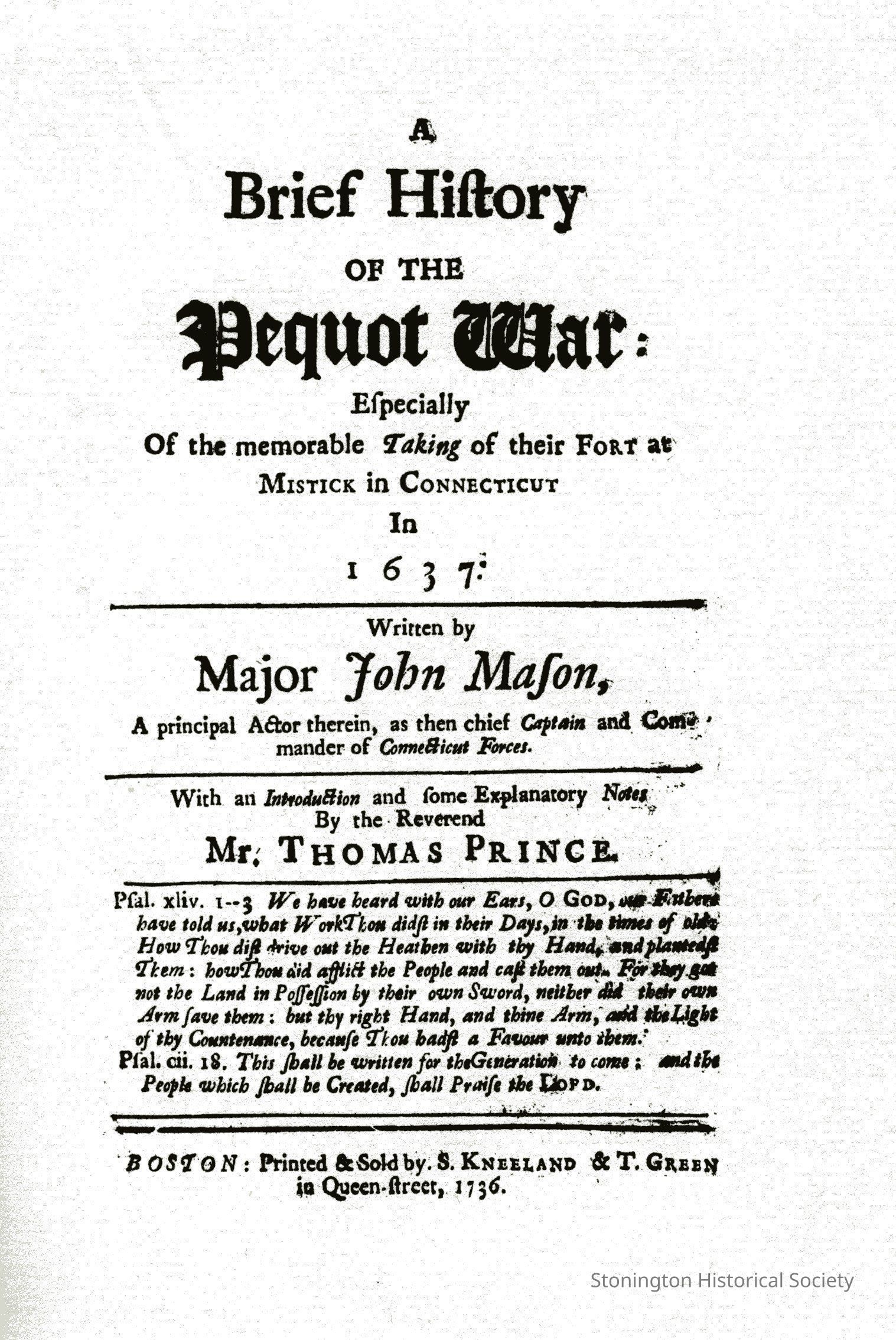 Reprint of John Mason's hsitory of the Pequot War (Mystic CT)