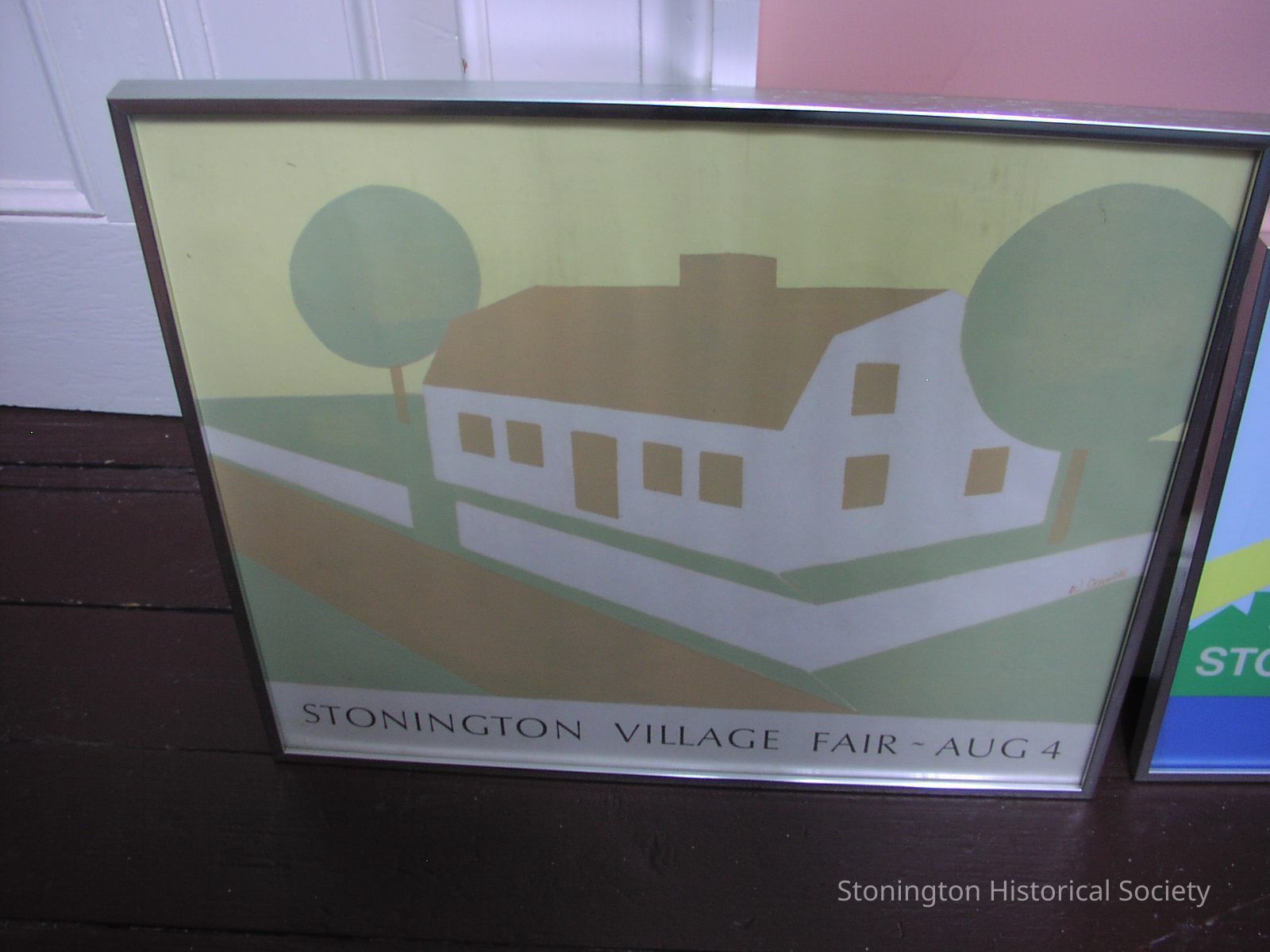 Stonington Village Fair poster, August 4 (1979), framed. Brown, green,yellow and white shows house and trees; signed on right. One of set of 18.Collection