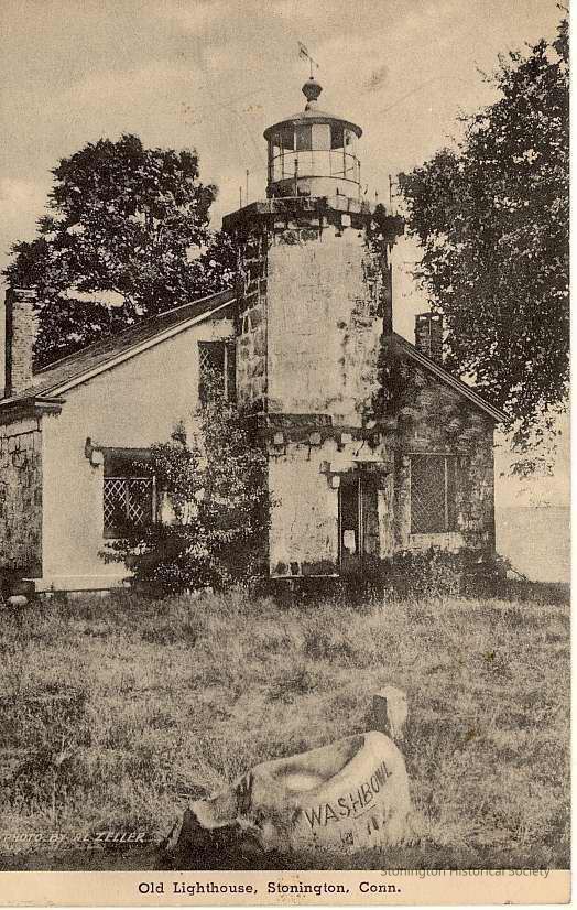 Postcard of Old Lighthouse, Stonington Conn. after the Stonington Historical Society bought it with washbowl in foreground