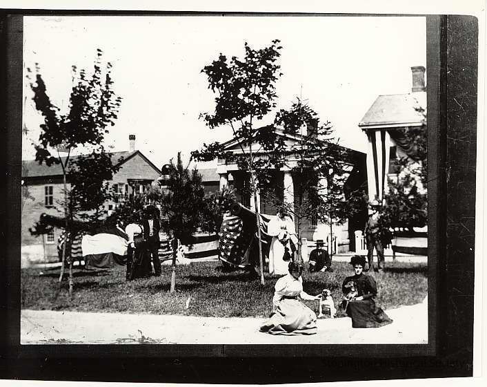 Cannon Square circa 1890s with women and dog on sitting on southeast corner