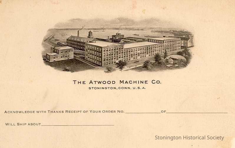 Postcard of Atwood Machine Co. that was used as an acknowledgement of order.