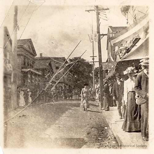 Water Street looking north near Grand Street corner Note railroad gates in background