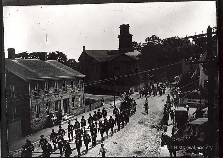 Firemen's Parade, 1914, on Elm Street, near Cliff Street with stone house on left