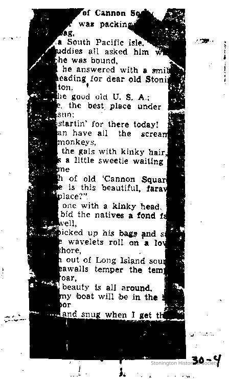 Poem from newspaper "South of Cannon Square" by Percy Crompton